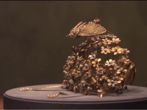 而最顶部就是这只金丝嵌珍珠飞蛾。