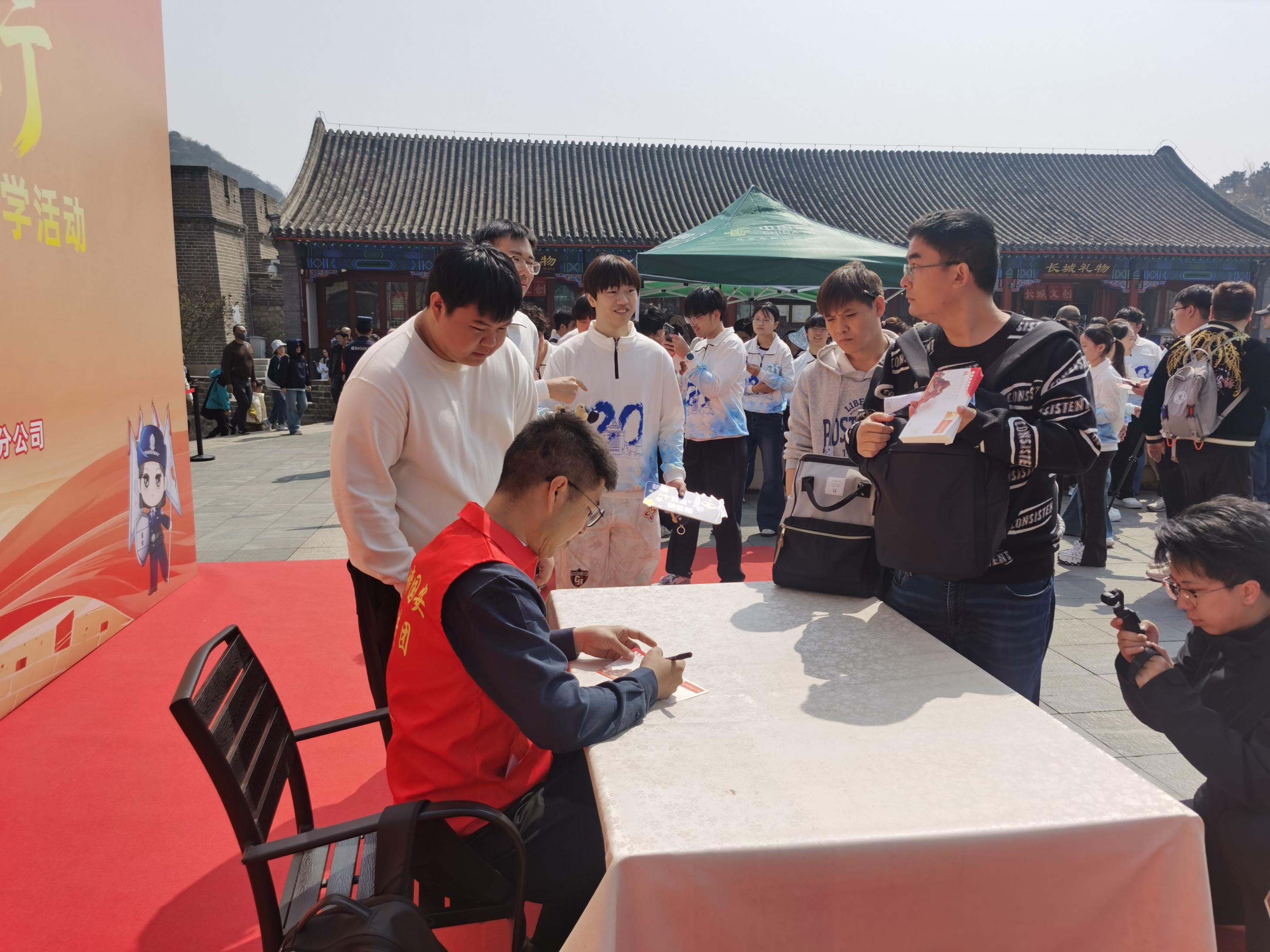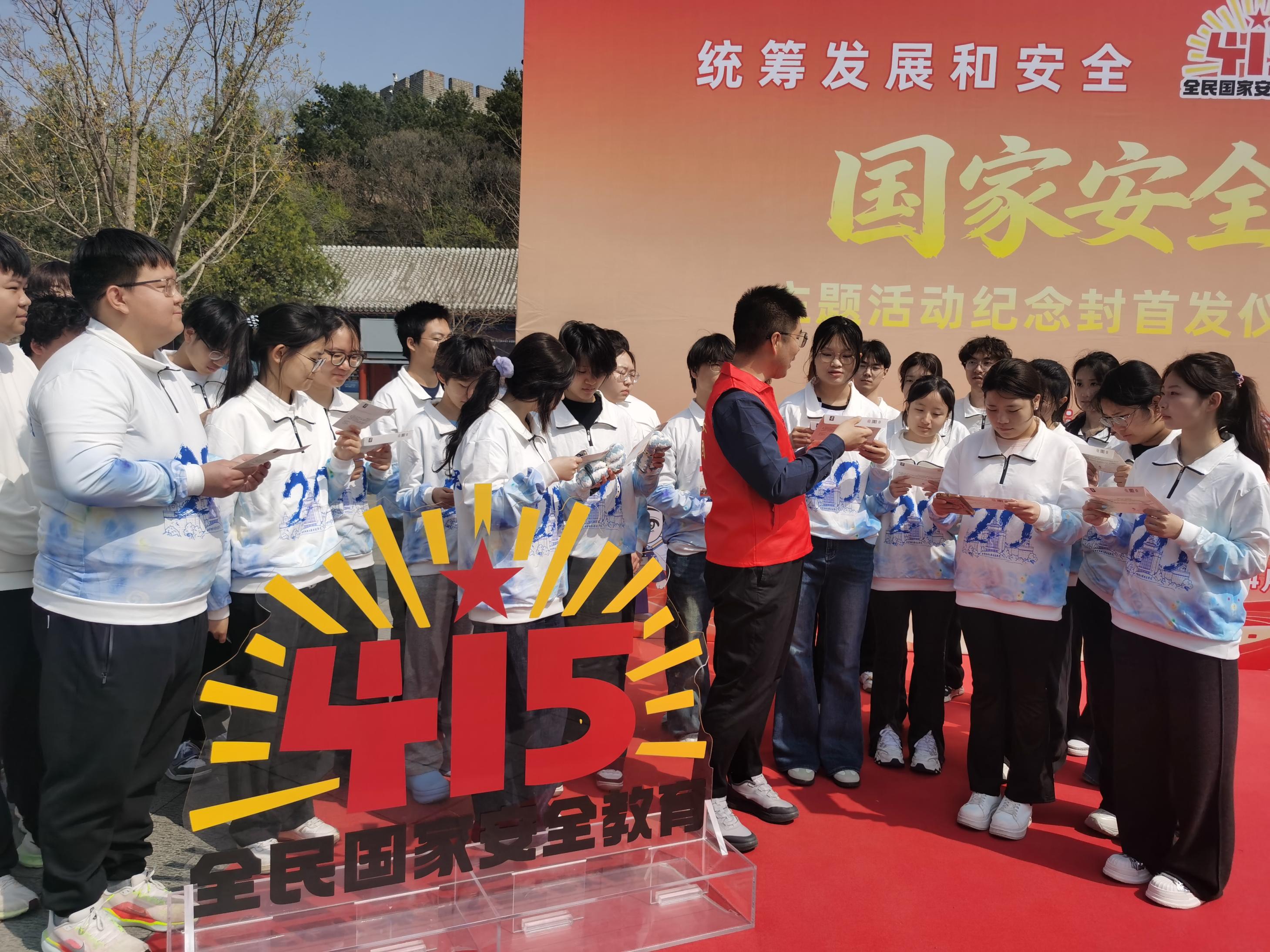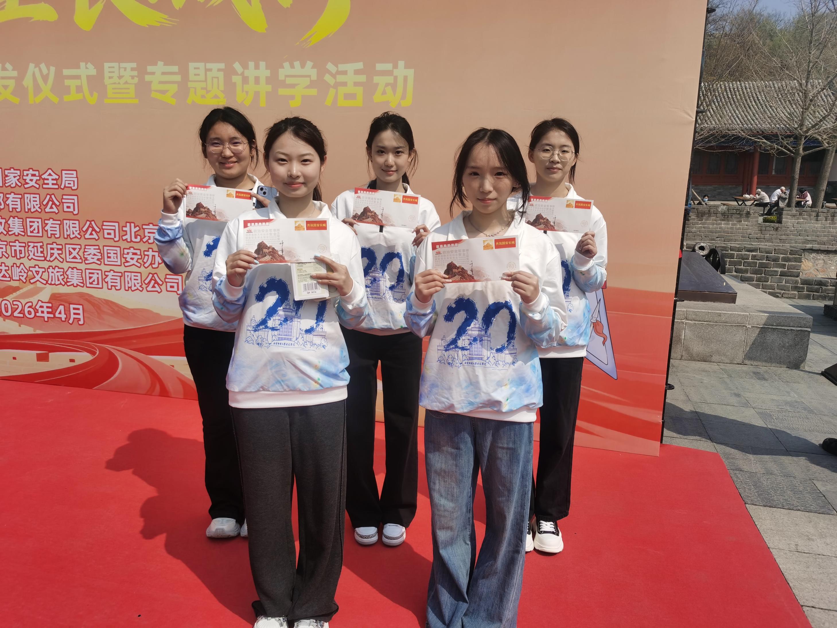 揭幕仪式,编号为PFTN-136的“国家安全长城行”主题活动纪念封首次亮相。仪式后,作为“红墙国安宣讲团”的一员,设计师于童现场开展了国家安全知识专题讲学,通过知识科普、互动问答等形式,生动宣讲国家安全相关知识,让在场的学生、群众、游客在纪念封的方寸之间了解国安使命与长城精神。参与活动的孩子们举起自己手绘的国家安全主题画作,与纪念封和远处蜿蜒的长城合影,感悟“长城护山河,国安守万家”。