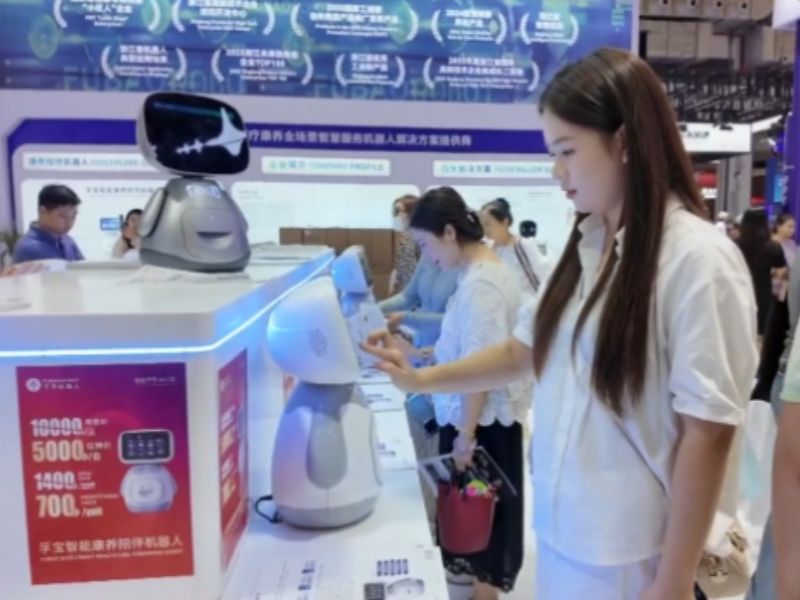 消费者 江宇欣:科技融入到了我们的生活中,像这个机器可以连接我们的血压计,然后来检测我们身体的数据,这可以方便我们了解自己的身体健康情况。