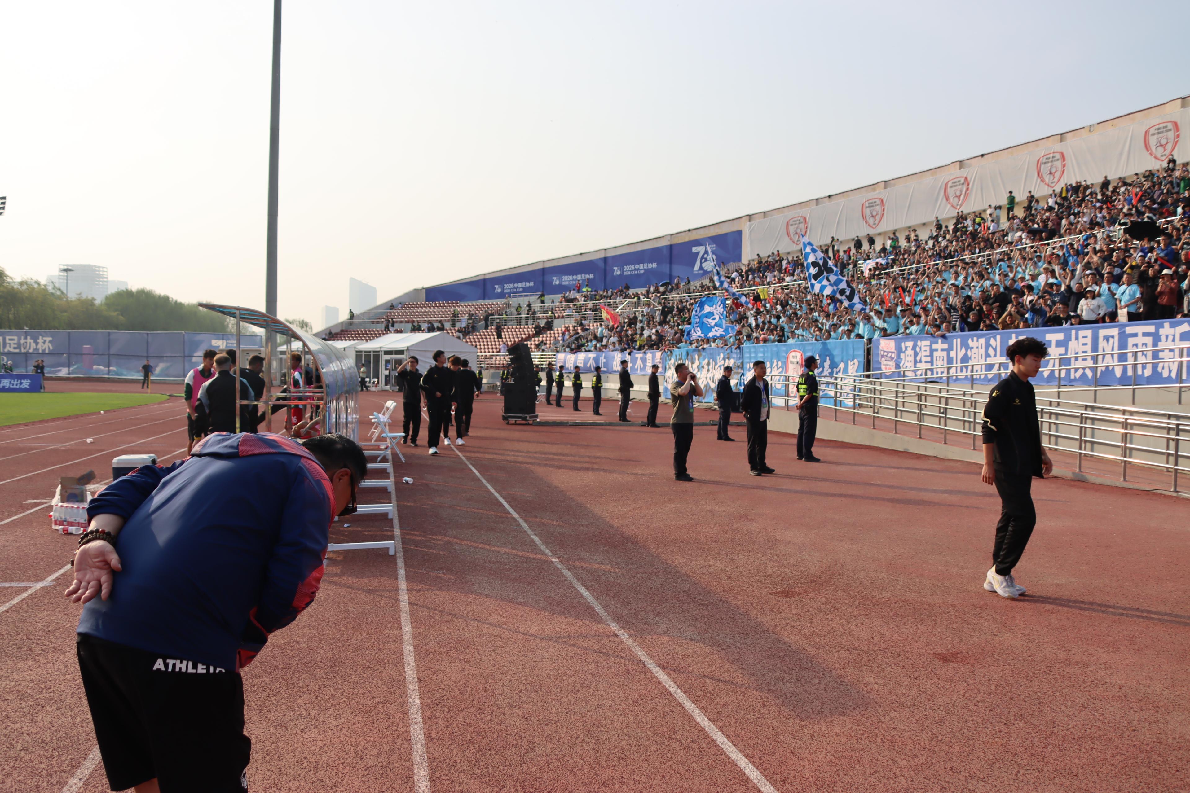 特别是没过多久后,通州鹏瑞队又宣布引援,除邹德海、单欢欢两名现役球员加入外,荣昊和赵明剑两名退役前国脚的加入,又一次把队伍推上了“风口浪尖”。一波一波热度后,4月18日的这场比赛有近六千名球迷到场,赛场北侧的围栏外也站满了观赛球迷,还有更多球迷因预约不到球票,只能选择线上观赛。记者看到,单在抖音平台上,就有近六千人同时在线观看比赛。一场比赛后,通州鹏瑞队的抖音号增加了超3万名粉丝。