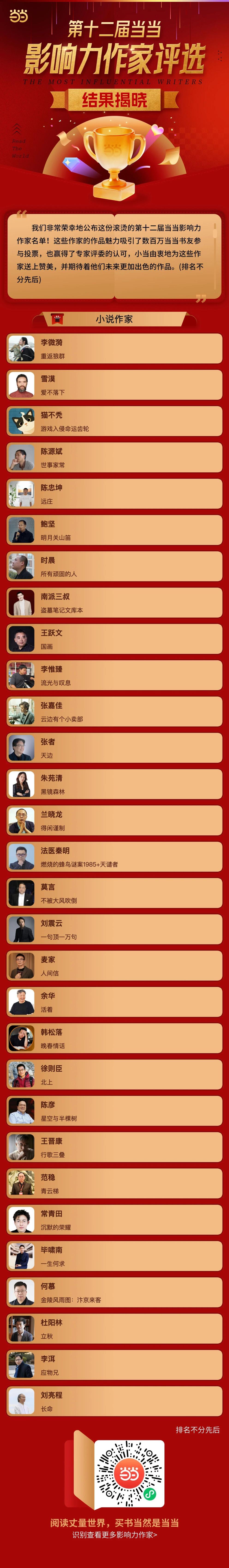 4月23日,第十二届当当影响力作家评选结果正式公布!