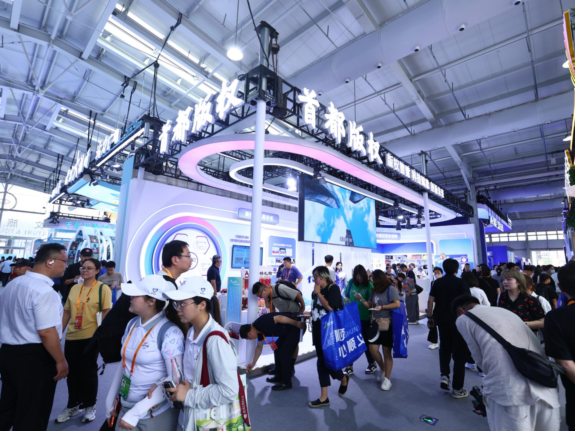主办方供图 9月10日,2025年服贸会启幕。位于北京首钢园9号馆的首都版权展区内,身着新中式服装的机器人“版版”正在静候观众的到来,她本事很大,可以带着逛展、互动解...