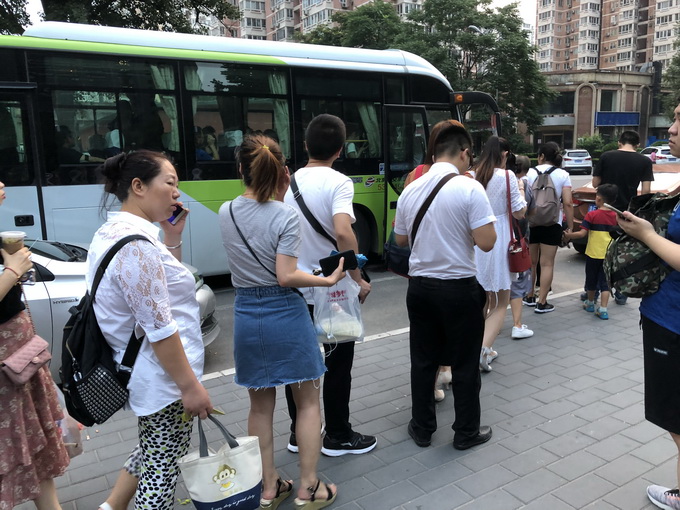 在班车始发站采育中心小学,张先生告诉记者:“为了坐上早上七点的班车,我提前半个小时就开始等车,但排队人数已经超过100人。”张先生边向记者展示照片边说。