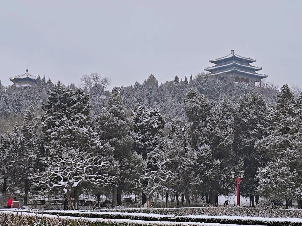 白雪覆红墙,北京景山公园披上银装